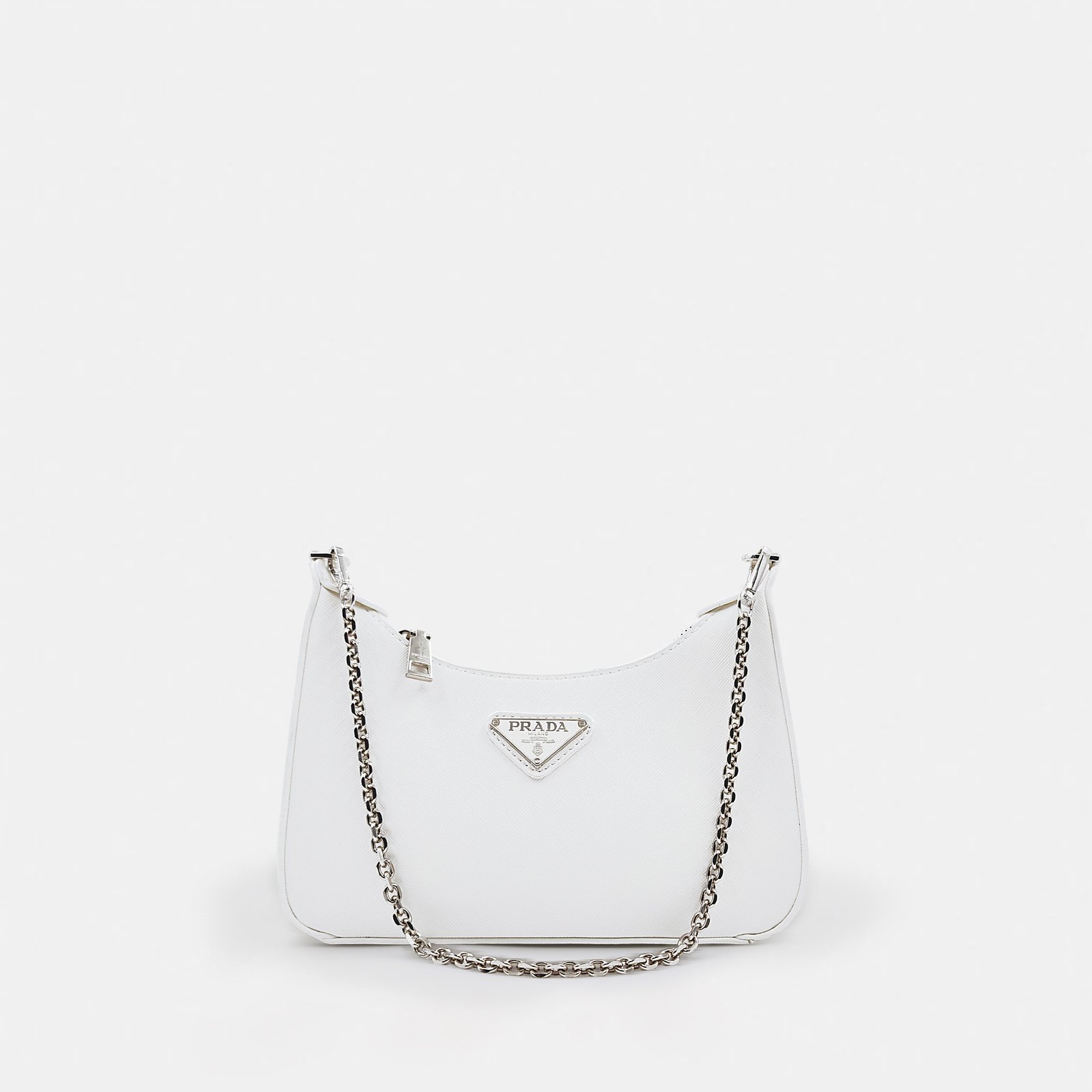 The Prada white is a modern reinterpretation of 1990s and early 2000s minimalism. Introduced in 2020, the Cleo quickly became a fashion favorite for its clean, sculptural lines, luxurious materials, and vintage-inspired aesthetic. It blends retro charm with contemporary sophistication.